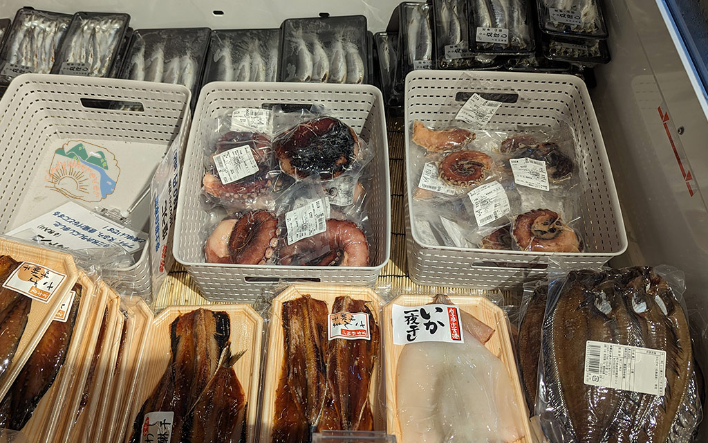 ただの食事ではありません、ここにも漁船より獲れた四季に異なる新鮮な魚たちが買えます。魚をさばけない人は他の魚加工品と町内の名物ホルモンなどがありますので、ぜひおすすめです。