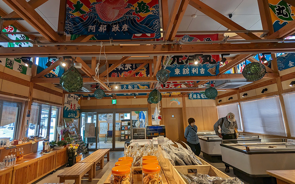 同じの建物の中に、新鮮な海産物が販売しており、地元が作った工芸品もあります。興味ある方は、どうぞお購入いただければと思います。