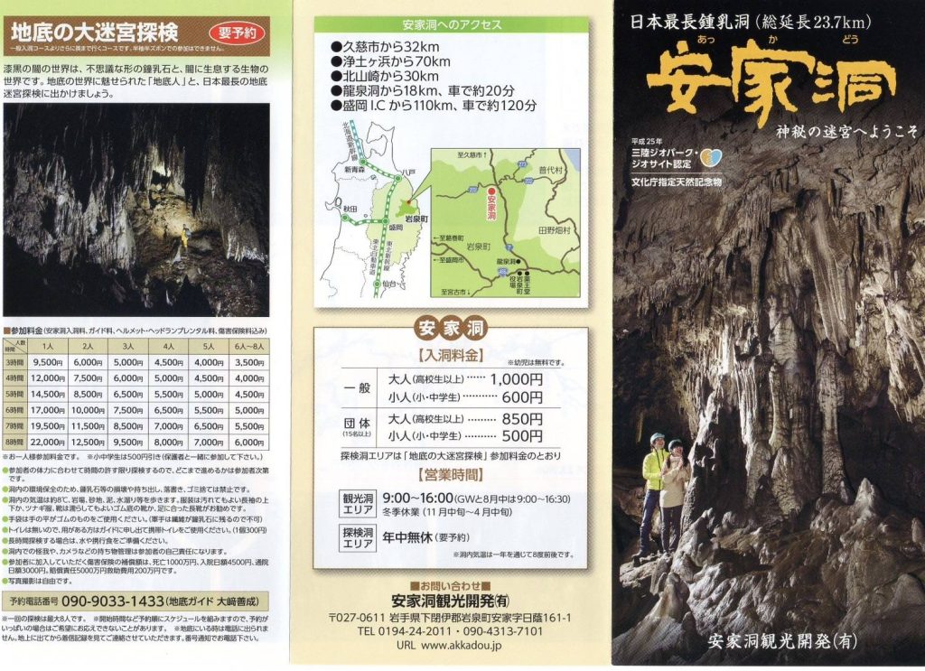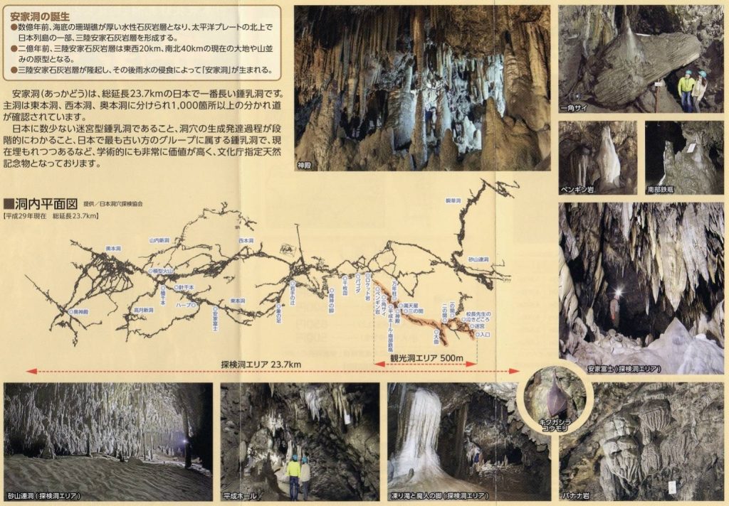 這次要來介紹日本最長的洞窟-安家洞。它位於日本岩手縣岩泉町的右上角部分。安家洞為日本國家級的天然紀念物,全長達23.7公里為日本最長洞穴,至今仍未能了解其全貌。在這裡,你可以觀察到所有跟鐘乳石相關的岩石,安家洞又稱是「鐘乳石的博物館」!